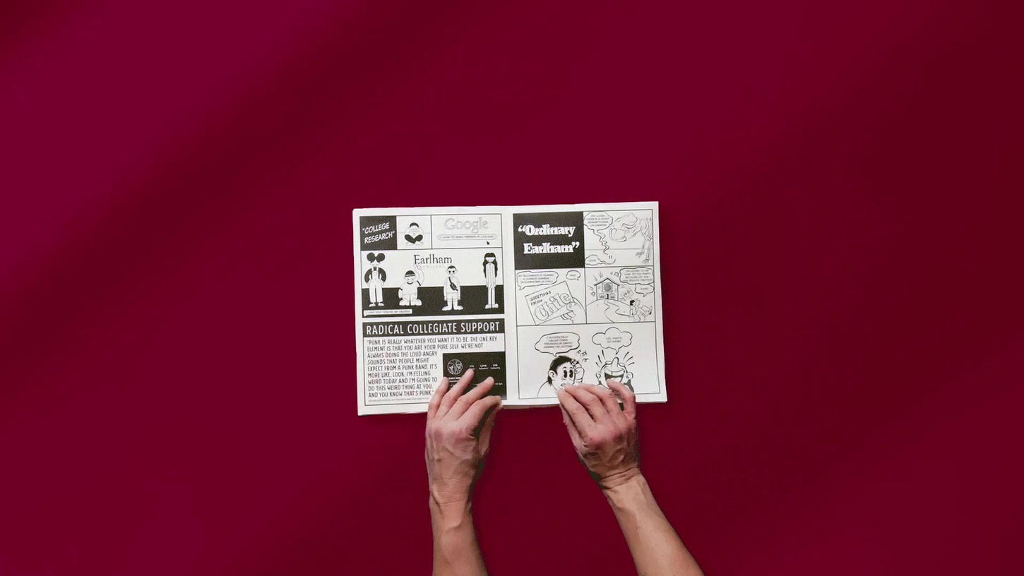 To bring the idea of Earlham Mighty to life — and showcase how it’s a powerful force for good — we worked to create a creative expression that reflects it in all of its sincere, eclectic, approachable glory. We helped bring the handcrafted, joyful, personal feel of Earlham’s community to life is through hand-drawn elements like comic strips and other expressive illos.