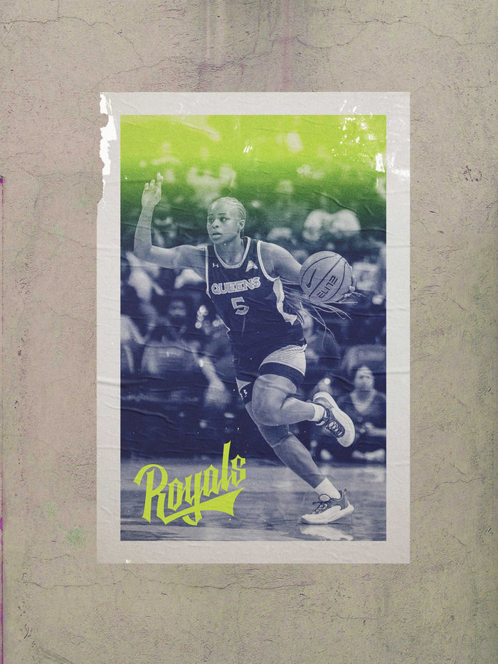 I built out that custom Q into the acronym QUC for use on their scoreboard, and into the word QUEENS, which has since been implemented as their primary institutional logo. I even designed them an energetic script wordmark for their team name Royals.