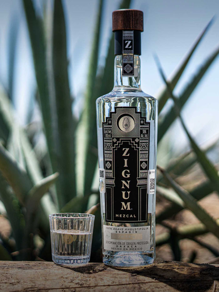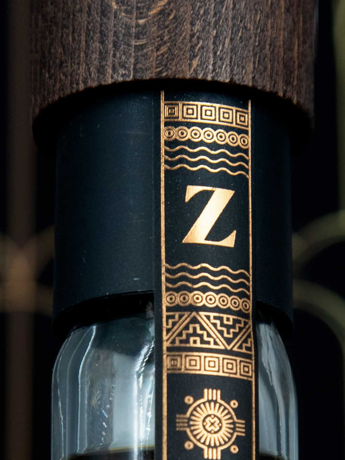 Zignum– meaning tip of the spear– has been outfitted in all new packaging inspired by pre-Hispanic Oaxacan temples. Silver and gold embossing pops from the label’s black paper stock, referencing the colors of the liquids and paying homage to the region’s heritage. The geometric patterns are derived from Zapotec weavings and symbols, flanking a doorway, leading to a dark entryway that calls to mind the cool, dark, barrel-aging room at the distillery. The wooden closures reference Zignum's unique barrel aging process and also honor the local tradition of hand-carved alebrijes.